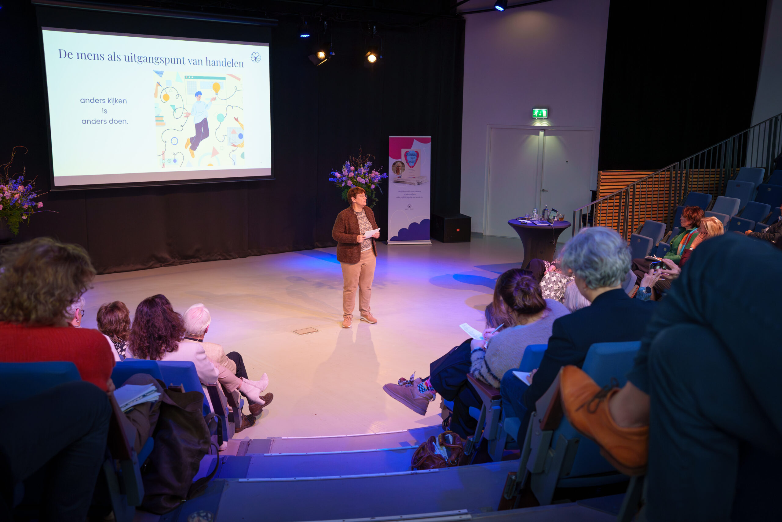 Haar ervaringen deelt zij aan de hand van enkele vragen die worden gesteld door de dagvoorzitter.